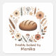 The rustic floral style works especially well with kraft bread bags, parchment wrapping, bakery boxes, and farmhouse-style packaging.