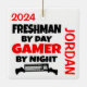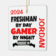 This ornament featuring the quote "Freshman by Day Gamer by Night" is perfect for any freshman that loves playing video games.