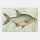 This art print illustrates a detailed painting of a freshwater fish. The background is a vintage map in light aquatic colour. This design would perfectly fit any product of your fishing collection.