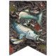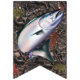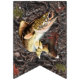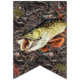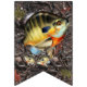 Freshwater Fishing Party Bunting - features muskie, walleye, northern pike, king salmon, striped bass, bigmouth bass, blue gill with a camo background