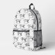 This backpack features a sophisticated repeating pattern based on Frida Kahlo's iconic initials and signature. The stylised "FK" monogram is prominently displayed in bold black, with her authentic full signature elegantly placed beneath each initial. The minimalist design stands out beautifully against a clean white background, creating a chic and artistic tribute to her enduring legacy. This unique accessory is perfect for carrying your essentials while expressing admiration for the legendary artist. © 2025 Frida Kahlo Corporation. All Rights Reserved.