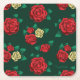 Frida Kahlo | Red and Gold Rose Pattern Square Paper Coaster