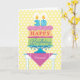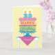 A birthday card for your 30 year old friend. "Happy Birthday" is on each layer of the cake with pink decorative icing separating them. A subtle background of yellow and blue anchors the design. Bright colours and a bold graphic styling give this birthday wish a festive feel. You can also change "friend" to personalise for any one.