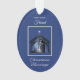 Capture the essence of Christmas by personalising the recipient's relationship on this beautiful ornament. Against a serene navy blue night sky, the Holy Family's humble stable and the radiant Bethlehem star shine brightly. Tailor the gift item to your loved one's unique role, and send warm Christmas blessings, sharing the light of Christ with someone who holds a special place in your heart.