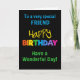 Design is brilliant - there is a male version and a female version of this cartoon and I bought both! You can personalize all the type on this card. I love these cartoon cards from Le Grand Art. I will be coming back to buy more. So pleased with the quality. Great colour and good quality cardstock.