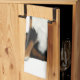 Original fine art design of a friendly Bernese Mountain dog by artist Carolyn McFann of Two Purring Cats Studio printed on a quality American Mojo kitchen towel for canine art fans.
