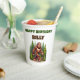 Above the bigfoot graphic, the words "Happy Birthday" and the child's name take centre stage, creating a personalised touch that's sure to make the birthday boy or girl feel extra special. And with the flexibility for the buyer to customise the name, you can ensure that every cup is tailored to perfection for your little one's big day.