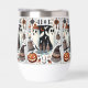 Indulge yourself in this friendly ghost Halloween wine glass/ tumbler. The design has dancing white Halloween ghosts, jack o lanterns and ghouls.