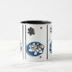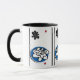 Friendly Flower coffee mug features flowers with contemporary geometric accents in red, black, and blue. Fun, bright Friendly Flower coffee mug makes all occasions special. Original design by Anne Bell.