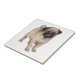 Original fine art design of a cute Pug dog by artist Carolyn McFann printed on a quality ceramic tile.