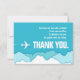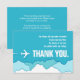 A vibrant turquoise and white thank you card tailored to anyone, whether it be friends, family, or colleagues who flew out to come see you, for business purposes, a family gathering, a wedding, or any other major event. The front side features a short and friendly poem, while the opposite side features a spot for your unique message.