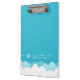 A bright and vibrant turquoise clipboard tailored to the airline pilot, flight instructor, or aviation engineer. It features a bright turquoise theme with a miniature aeroplane soaring over clouds on the bottom edge. Next to this miniature plane and above the clouds is the recipient's name in white. It works as a fun and thoughtful gift for someone who works in or loves the business of aviation.