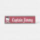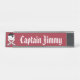 Friendly Smiling Pirate with Crossed Swords on Red Desk Name Plate