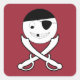 Friendly Smiling Pirate with Crossed Swords on Red Square Sticker