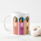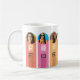 A coffee cup with custom photos of all your friends in circles. Mug says "Forever friends" in supporting peach and pink stripes. The perfect cup for all your friends.