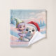 Friends in a fantasy world. Cute baby polar bear with big, curious eyes. Its soft, white fur shines in the winter sun, little elf and a cute bird are looking forward to the Christmas season.