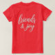 he t-shirt features the text "Friends & Joy" in a multicolor design. Each word is a different colour, creating a cheerful and vibrant look. You can imagine "Friends" in bright, playful colours, while "Joy" uses bolder and warmer tones. The ampersand ("&") could be a fun element, perhaps in a metallic colour or a heart shape