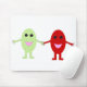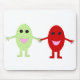A white mousemat featuring a cute cartoon of a smiling red grape holding hands with a smiling green grape, both grapes have shiny black eyes and pink mouths. Clixk on the customise it button to choose from a range of different colour mousepads.