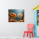Two vibrantly colored fish face each other among a lush coral reef. Sunlight beams gently penetrate the water, highlighting their intricate patterns.