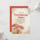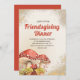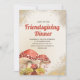 Rustic Friendsgiving dinner invitation with red and green mushrooms in a beautiful fall/autumn scene.