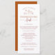 Perfectly charming in fall shades of garnet and pumpkin, our Thanksgiving dinner menu showcases your best "Friendsgiving" dishes with modern and festive typography and a cute acorn illustration. Customise with your names, the year, and your menu using the fields provided. Long and narrow rack card style provides ample space to list all your delicious dishes!