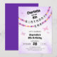 A cute girls birthday invitation featuring friendship bracelets that spell out BIRTHDAY ERA. This purple and pink invitation is accented with butterflies and is perfect for a young girl or teenager.