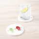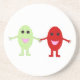 This pretty sandstone coaster This design features a cute cartoon of a smiling red grape holding hands with a smiling green grape, both grapes have shiny black eyes and pink mouths.