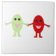 This awesome tile features a cute cartoon of a smiling red grape holding hands with a smiling green grape, both grapes have shiny black eyes and pink mouths.