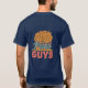This t-shirt design features the text "Fries Before Guys" in a variety of colourful fonts against a solid light blue background. The text is arranged in a playful and eye-catching way, with the word "Fries" in a larger font than the word "Guys". The overall effect is fun and lighthearted, and the design is sure to appeal to anyone who loves fries.
