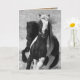 A Friesian stallion and a Gypsy Vanner stallion run together in a pasture in California. There is an additional image of the Gypsy inside the card. Both images are by Carol Walker.