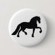 Classic white pin button with the unmistakable silhouette of the Friesian horse in, of course, black.