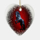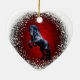 Friesian horse, black stallion,snow, red granite ceramic tree decoration