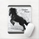 Friesian Stallion leaping into the air photo on black & white mousepad