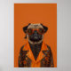 This quirky and stylish artwork features a charming pug dressed in a steampunk-inspired leather jacket, accented with Halloween-themed designs in vibrant orange and black. The pug's playful expression is enhanced by its retro goggles and the adorable spider sitting on top its head, giving it a mix of cute and edgy. The bright orange background adds a bold pop, making this piece perfect for anyone who loves dogs, steampunk fashion, or unique Halloween themed decor. This print will bring character and a dash of humour to any space.