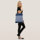 Fringed denim blue jeans frame. tote bag