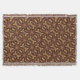This fringed throw blanket will keep you warm with style. The print is ethnic tribal with the colours tobacco, black and gold.