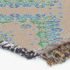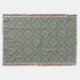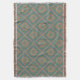 This fringed throw rug will keep you warm with style. Because it was inspired by the creators favorite persian rug the effect is bohemien. The print is intracate blue and green on a tobacco brown background . It's a print of a Tile layout. The Design comes from Oregon Tile maker, Fay Jones Day.