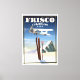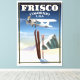 Frisco Colorado USA travel poster of a vintage old prop plane flying low over mountains.