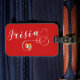 Luggage tag with stylish scripted font design, with the Frisian flag in a heart.