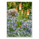 A beautiful butterfly has landed on a blue thistle flower in the midst of a summer garden.