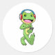 Frog at Music with Headphone Classic Round Sticker