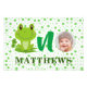 Frog Cartoon Baby Photo Green Dots Pattern Nursery Poster. Add kid name and kid photo, perfect to decorate a room or birthday party place