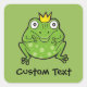 Green frog cartoon with golden crown. Prince frog. Custom background colour. Custom text.