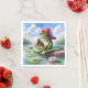 A whimsical frog wearing a red cap sits on a lily pad, holding a frothy beer mug