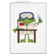 A green frog with safety goggles and a white lab coat does some experimenting in the lab on Frog in the Lab T-shirts, mugs, cards, stickers, tote bags, keychains, magnets, ornaments, and other science theme apparel and gifts.