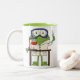A green frog with safety goggles and a white lab coat does some experimenting in the lab on Frog in the Lab T-shirts, mugs, cards, stickers, tote bags, keychains, magnets, ornaments, and other science theme apparel and gifts.