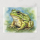 This charming postcard features a detailed watercolor illustration of a green frog with striking golden eyes. Sitting calmly against a soft, nature-inspired background, the frog’s lifelike details capture its gentle yet curious character. Perfect for nature lovers, animal enthusiasts, and postcard collectors, this design brings a touch of the outdoors into your mailbox. Whether sent for Postcrossing, kept as part of a collection, or given as a gift, it’s sure to bring a smile to the recipient’s face.
