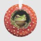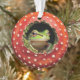 A charming green frog peeking out from inside a red toadstool creates a whimsical woodland holiday vibe. This cozy, nature-themed artwork blends Christmas charm with cottagecore fantasy, perfect for nature lovers, frog fans, and anyone who enjoys cute, magical forest designs during the holiday season. A warm and playful piece that stands out on any tree.