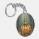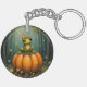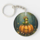 Cute Green Frog sitting on a pumpkin round Keychain. AI generated, my editing. Name on Keychain can be changed.
