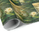 A frog is sitting serenely in a yoga pose on a lily pad in a tranquil pond. Sunlight filters through, casting a golden glow around the frog, who appears peaceful and content